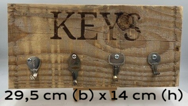 Steigerhout plankjes met sleutels hakjes om sleutels te kunnen hangen.